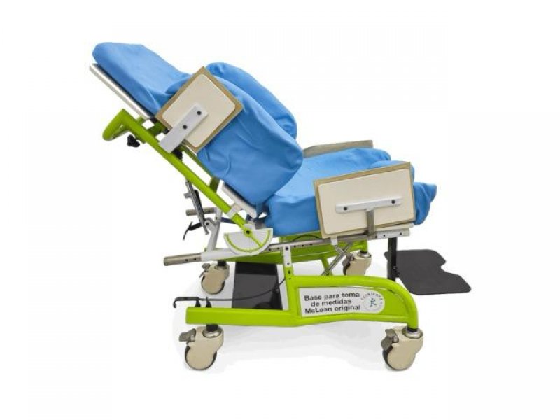Utilizamos conformadores al vacío Mc-Lean, libres de látex, que se moldean al contorno del paciente y están conectados a una bomba de vacío de doble conexión. Permiten realizar todos los ajustes necesarios hasta obtener la forma deseada. La base rígida incluye respaldo reclinable y sistema de tilt (inclinación del asiento), con indicador de ángulo, para garantizar la postura óptima durante la toma de medidas.