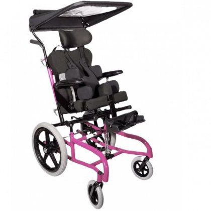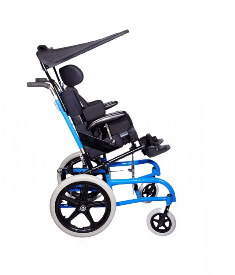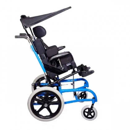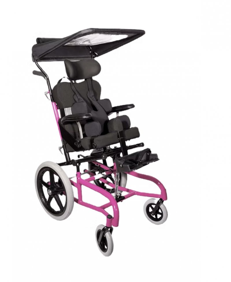 Silla de ruedas a medida de postura y traslado, desmontable con tilt multiposicional; asiento y respaldo de placas planas. Apoya cabeza regulable en altura, profundidad e inclinación, desmontable